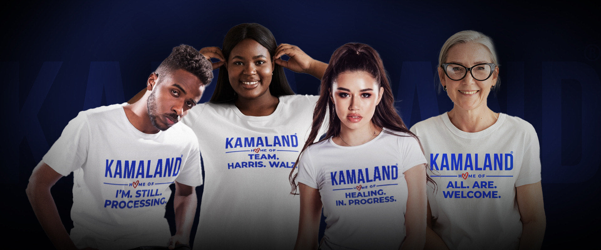 Kamaland® is a place where joy and hope fill its people, and love fuels the fight for freedom. It’s a community where everyone rallies around a shared vision of moving forward together, and all are welcome. If you identify as a citizen of the United States of Kamaland®, you are a Kamalander®—rooted in heart-centered values of freedom and unity—and you’re invited to wear it proudly.